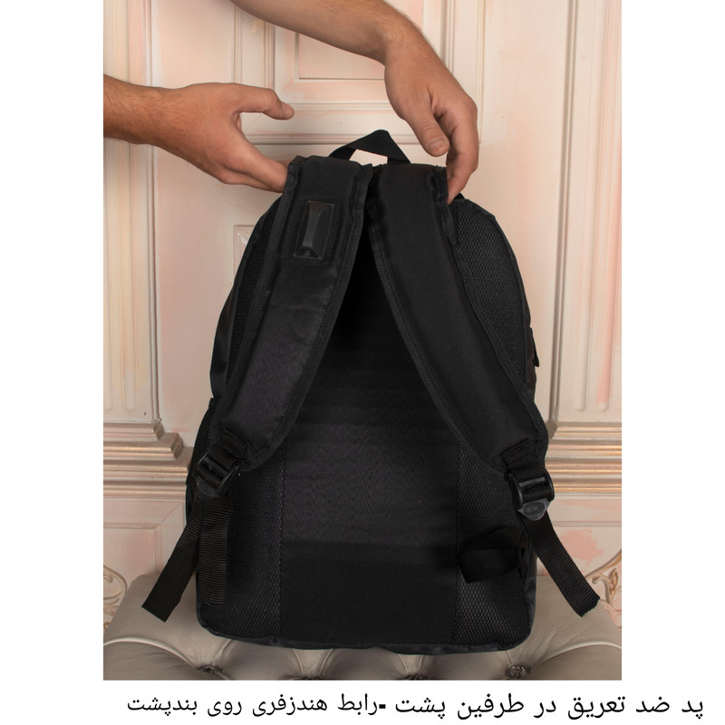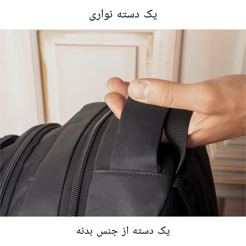 این کوله پشتی دو دسته دارد. یک دسته از جنس بدنه دسته دیگر از نوار با عرض2.5 سانتی متر الگانس میباشد