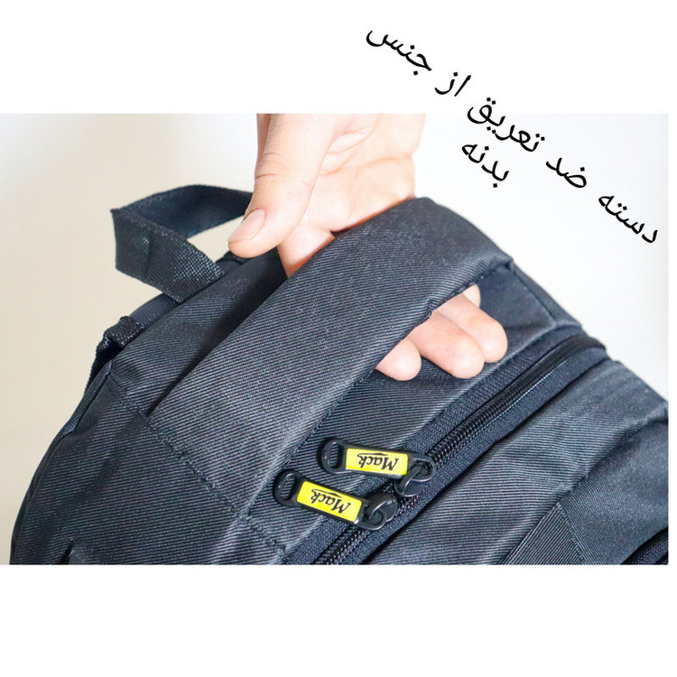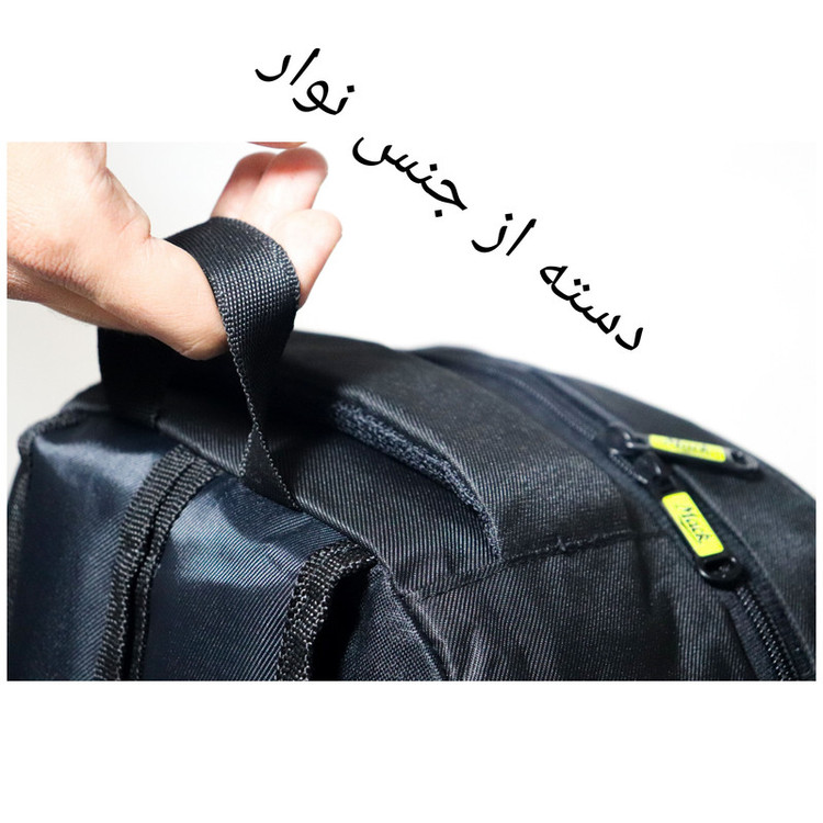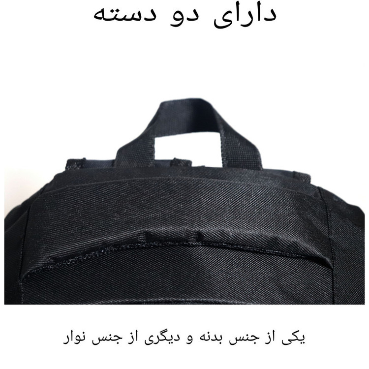 کوله پشتی علاوه بر بندپشت قابل تنظیم دو دسته دیگر دارد. یک دسته از جنس بدنه و دسته دیگر از نوار با عرض 2.5 سانتی متر