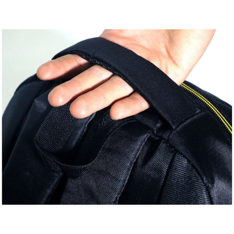 کوله پشتی علاوه بر جفت بندپشت قابل تنظیم دو دسته دیگر دارد. یکی از جنس بدنه دسته دیگر از نوار با عرض 2.5 سانتی متر