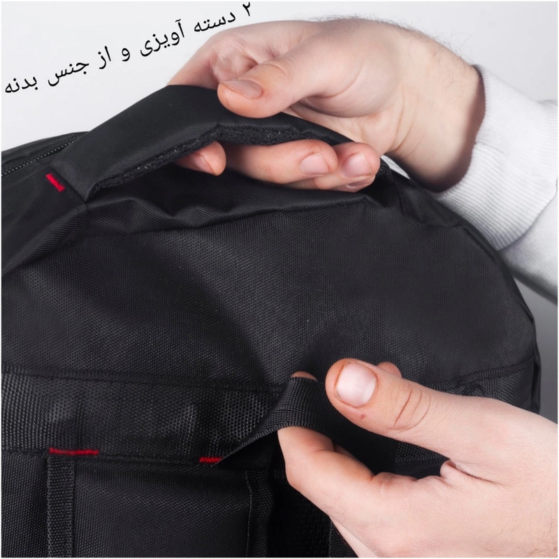 کوله پشتی دارای دو دسته هستش،یکی از جنس بدنه و دیگری از نوار بافتنی