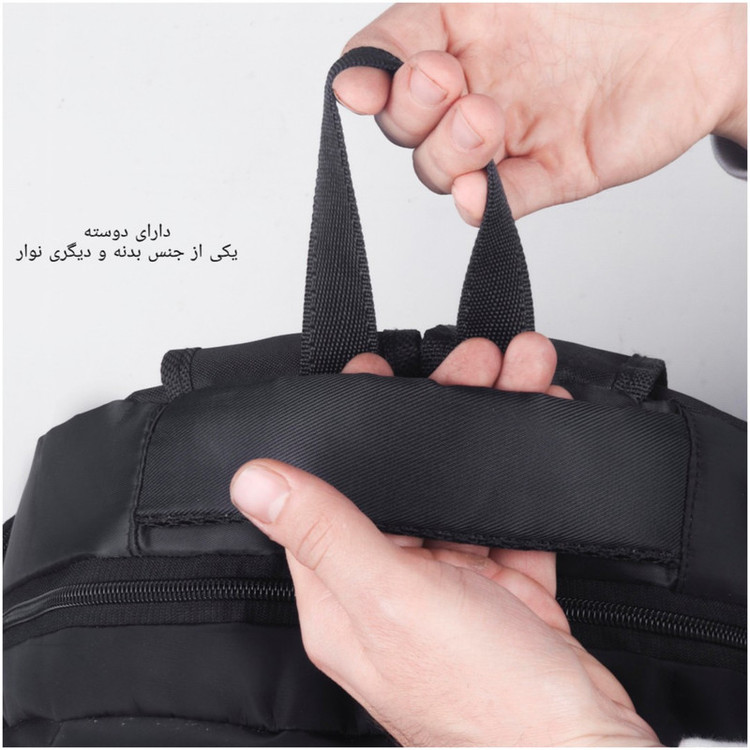 این کوله پشتی دو تا دسته داره که یکی از جنس بدنه و دیگری از نوار میباشد