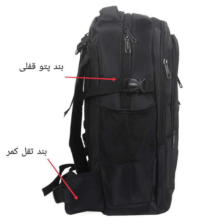 کوله پشتی دارای شش جیب است که یک جفتش جیب قمقمه هست