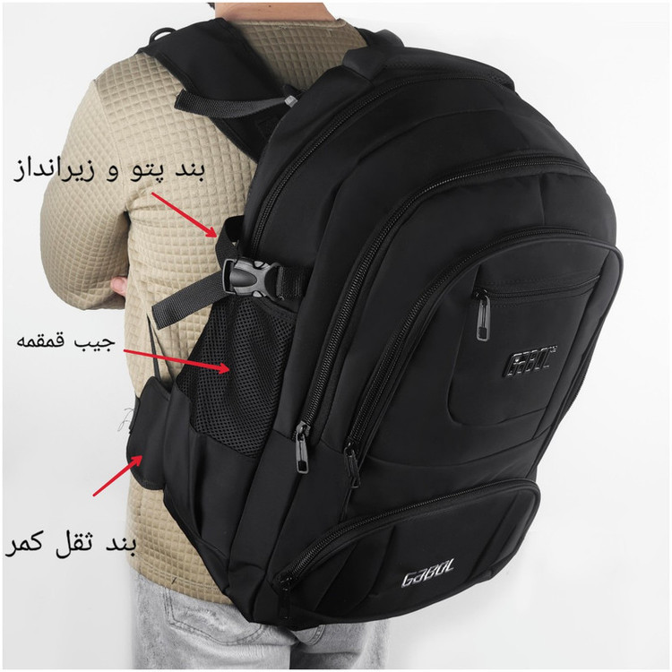 کوله پشتی دارای شش جیب هست که یک جفت آن جیب قمقمه است