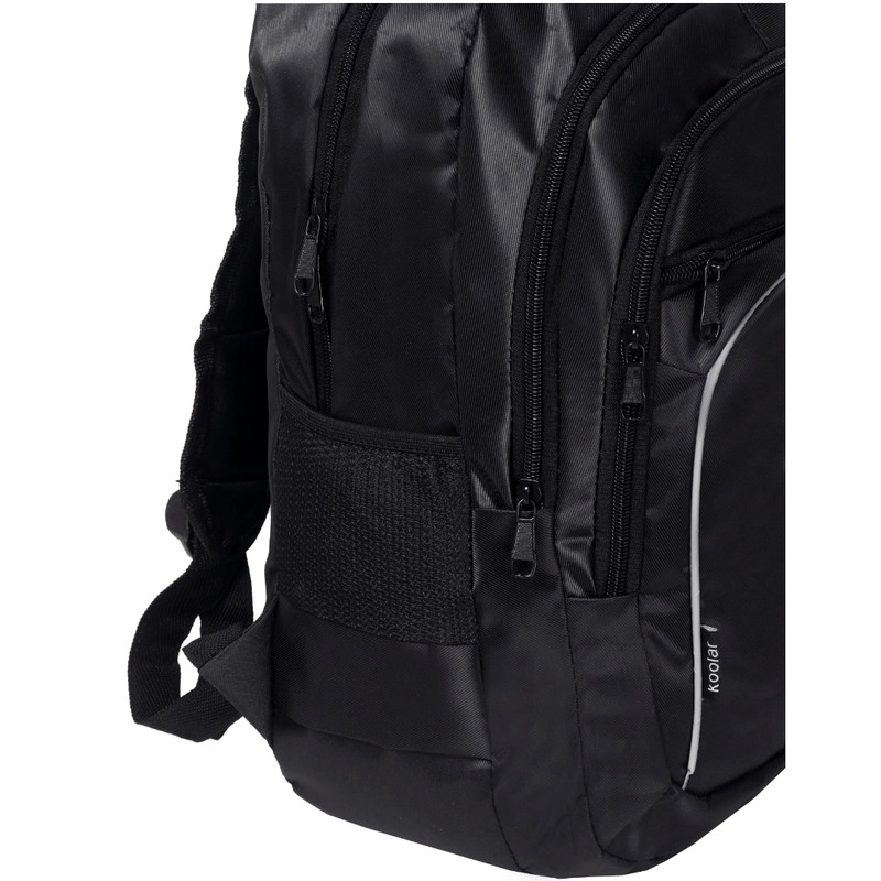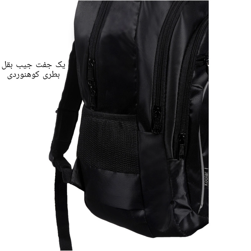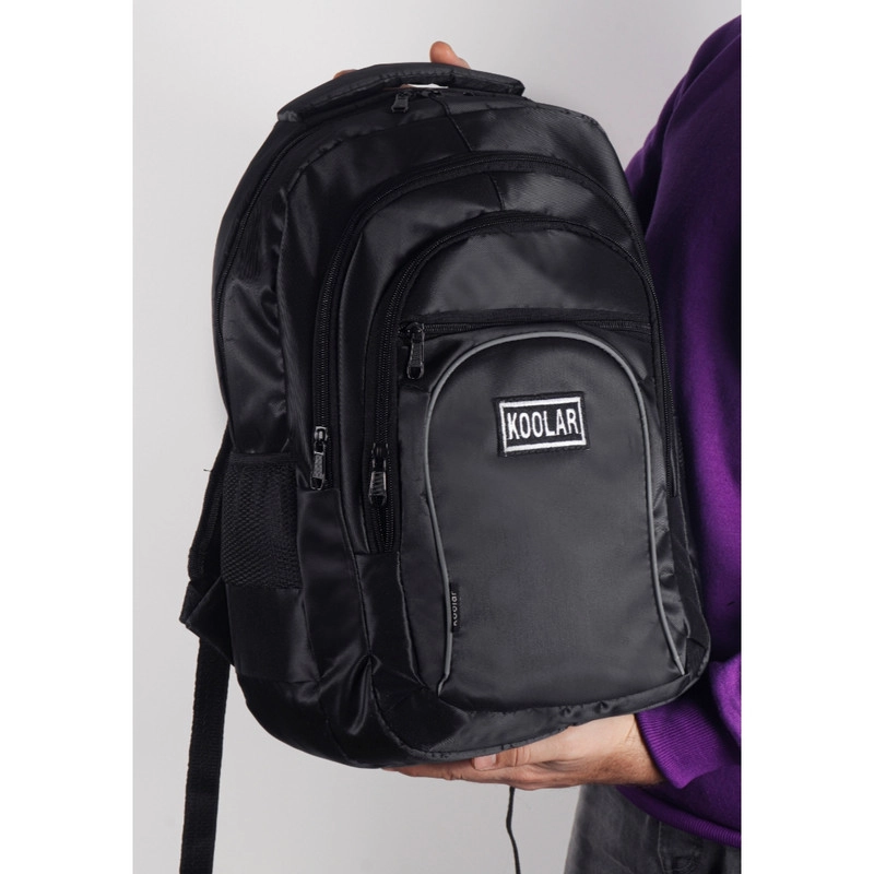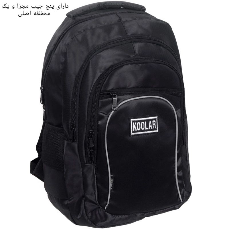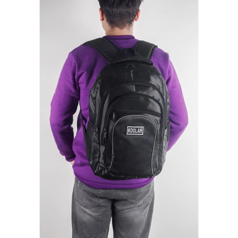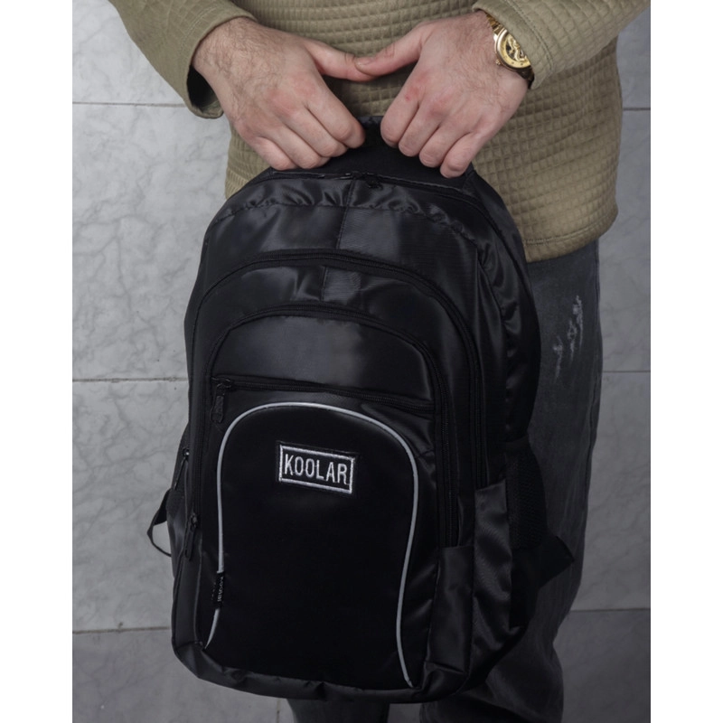 کوله پشتی koo یک دسته از جنس بدنه و یک از جنس نوار جهت حمل آویزی دارد.یک جفت بندپشت هم برای استفاده معمولی کار شده است