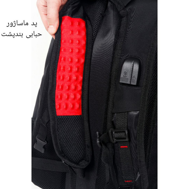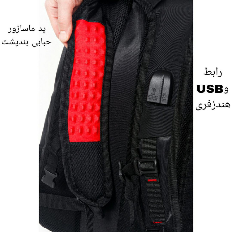 امکانات و قابلیتها: این کوله پشتی حرفه ای دارای یک محفظه لپ تاپ میباشد که ضربه گیر حبابی هم کار شده.پشت کیف پد ضدتعریق طراحی شده و زیربندپشت ماساژور حبابی هم دوخته شده است.کف کوله پشتی استوک دوخته که باعث میشه کف کیف کمتر سابیده شود.روی بندپشت رابط هندزفری و usb کار شده.