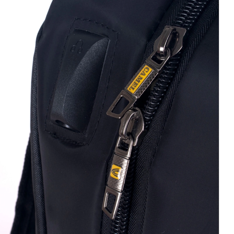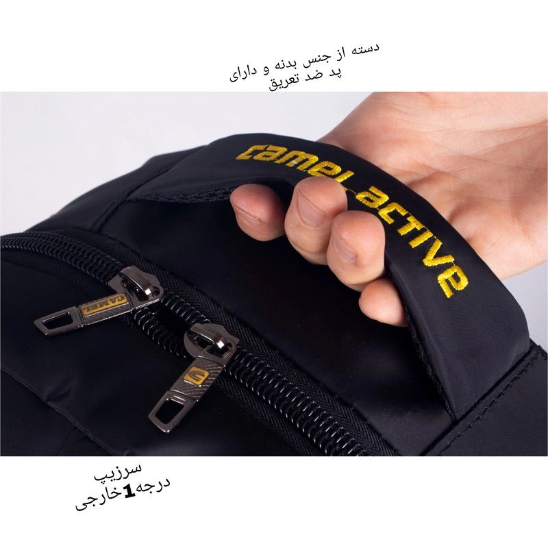 امکانات و قابلیتها: کوله پشتی دارای پارچه ضدآب و جیب مخصوص بطری نوشیدنی در دو طرف کوله است.همچنین رابط هندزفری روی کار برای تسهیل اتصال هندزفری به لپ تاپ یا گوشی دوخته شده است.کوله پشتی دارای دو دسته میباشد،یکی از جنس بدنه و دیگری از نوار 2.5