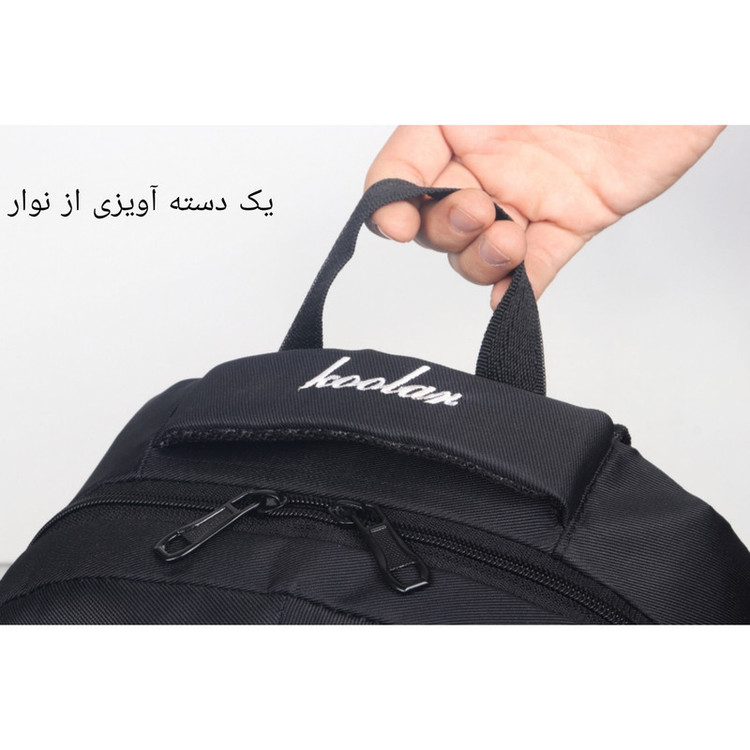 کوله پشتی علاوه بر یک دسته از جنس بدنه دسته آویزی دیگری از جنس نوار دارد