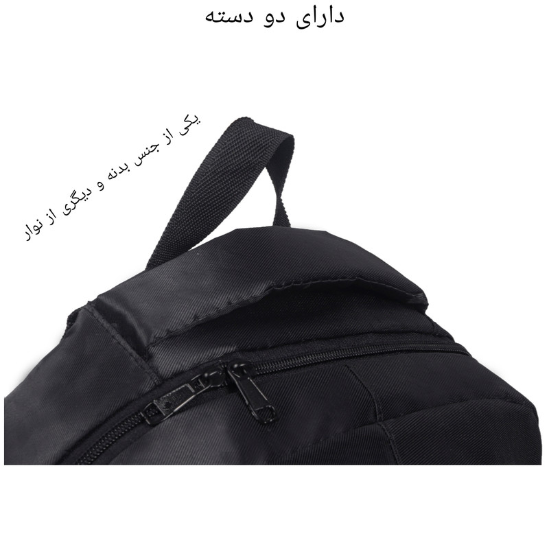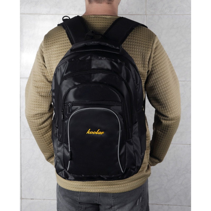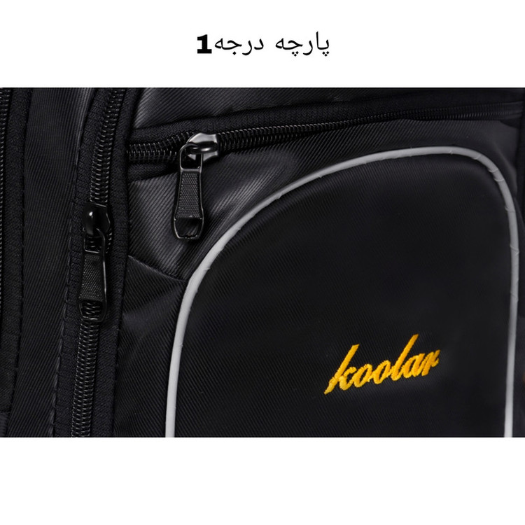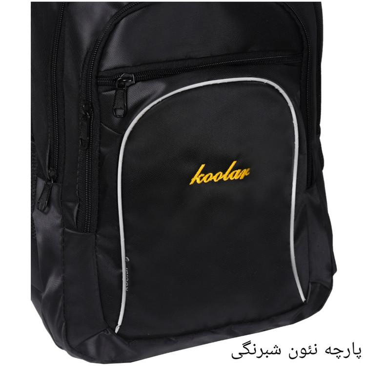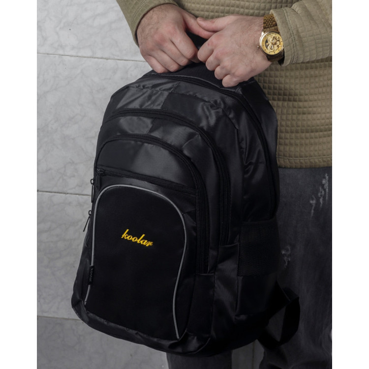 کوله پشتی koo یک دسته از جنس بدنه و یک از جنس نوار جهت حمل آویزی دارد.یک جفت بندپشت هم برای استفاده معمولی کار شده است