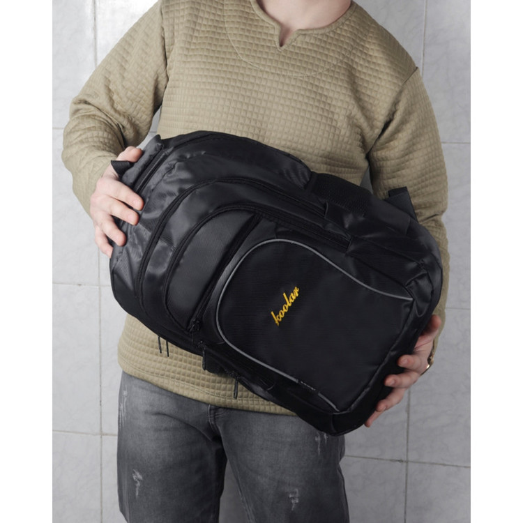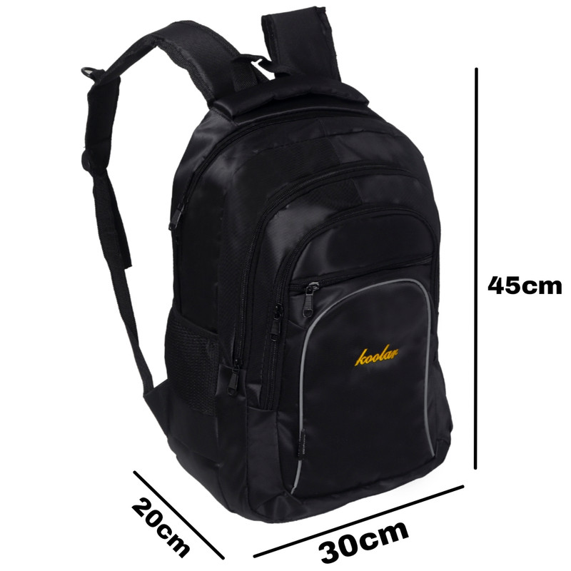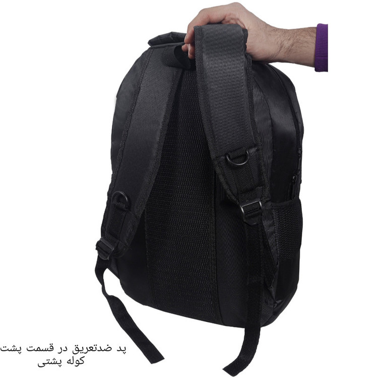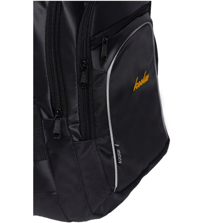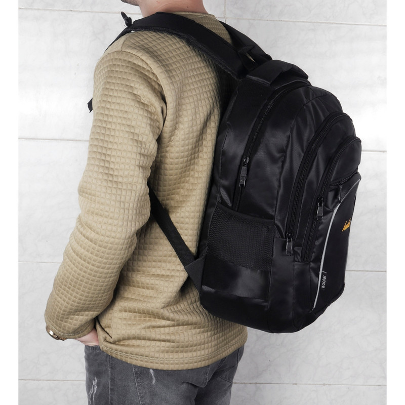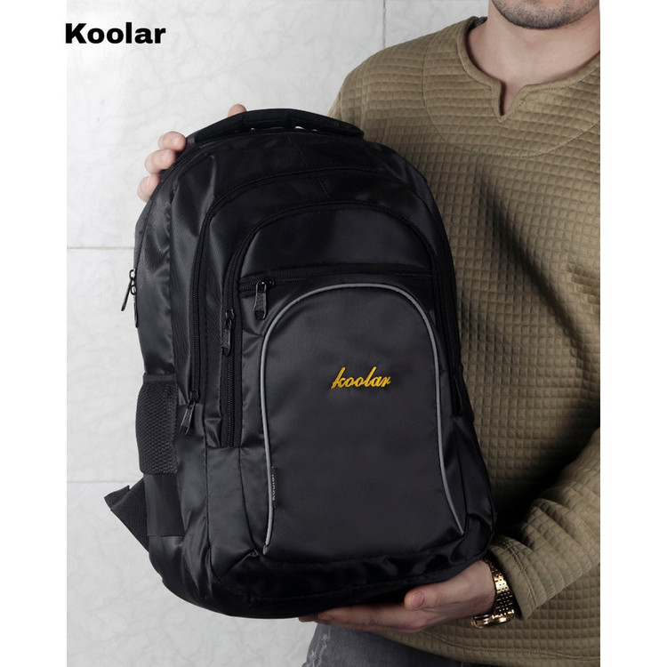 کوله پشتی koo یک دسته از جنس بدنه و یک از جنس نوار جهت حمل آویزی دارد.یک جفت بندپشت هم برای استفاده معمولی کار شده است