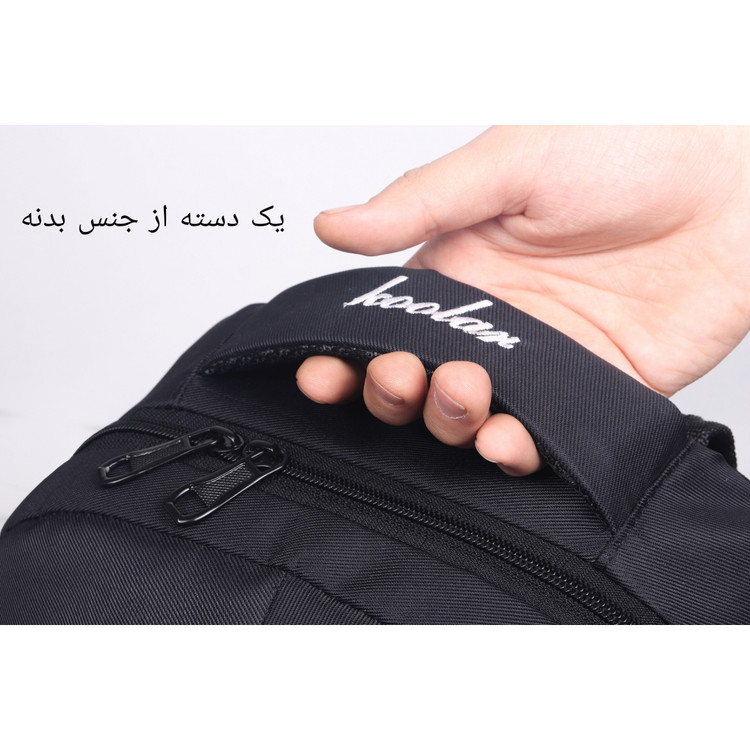 کوله پشتی علاوه بر یک دسته از جنس بدنه دسته آویزی دیگری از جنس نوار دارد