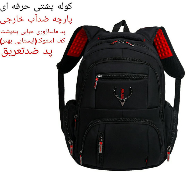 این کوله پشتی حرفه ای دارای شش جیب خارجی هست که یک جفت در دو طرف کوله برای بطری،دو جیب زیپ کوچک برای مدارک و گوشی،و دو جیب بزرگ برای وسایل بزرگتر طراحی شده است.این کوله پشتی دارای دو دسته هستش که یکی از جنس بدنه و دیگری از نوار الگانس ساخته شده